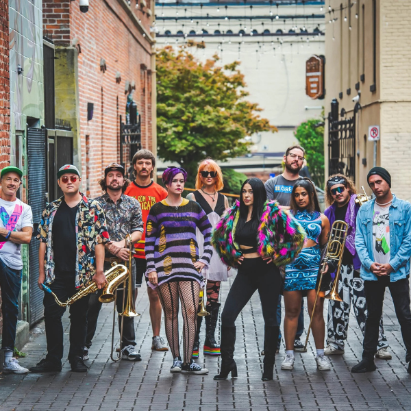 My Son the Hurricane is a multi-horn, multi-drummer, multi-singer brass funk beast from Niagara, On. The 12-piece brass-dance crew has toured multiple countries and played some of the world’s biggest festivals. In 2023, their “Mr. Holland’s Locust” received over 30 million views online. In 2025, the band took an over 70 date tour, sharing the stage with acts like Foo Fighters, Jason Isbell, I Mother Earth, and Colin James.